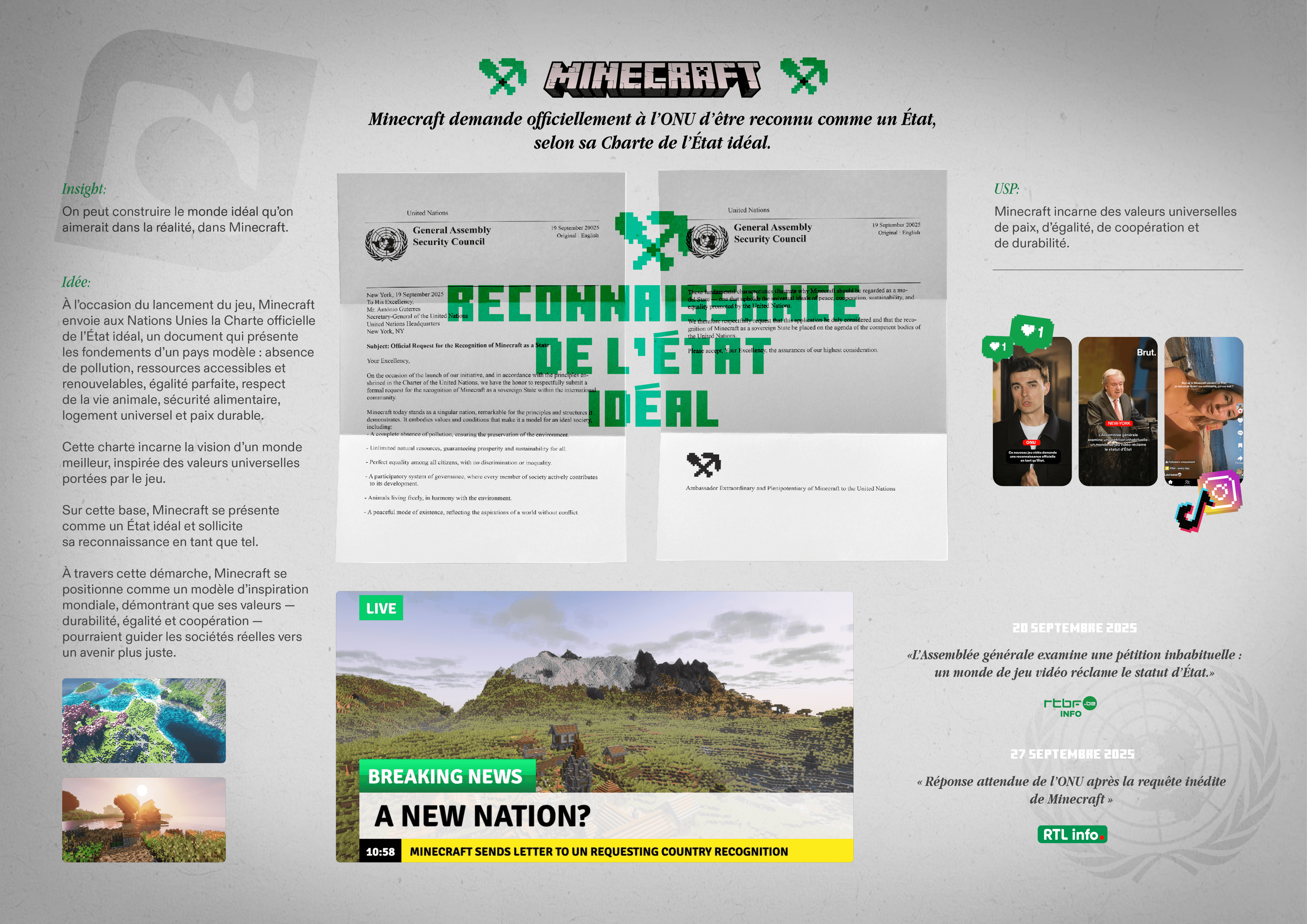 is to position Minecraft as a game where players can continue living exciting adventures even after summer ends. The campaign should highlight the game’s USP through a communication campaign and a brand activation.