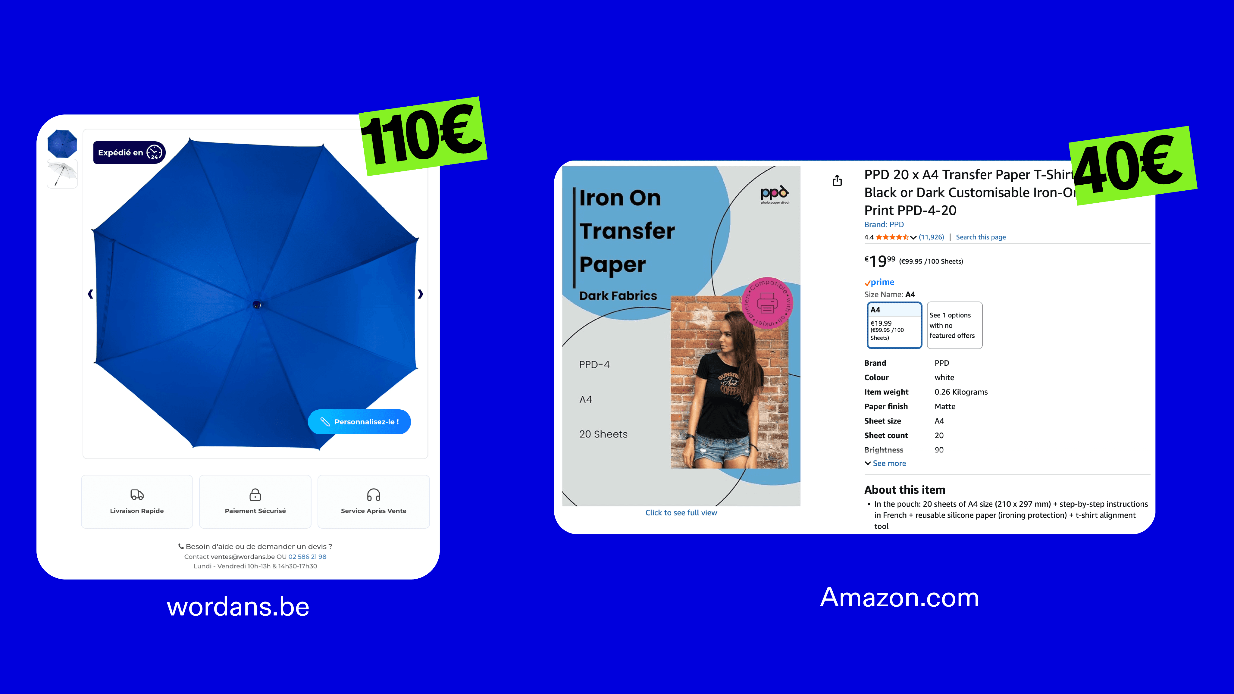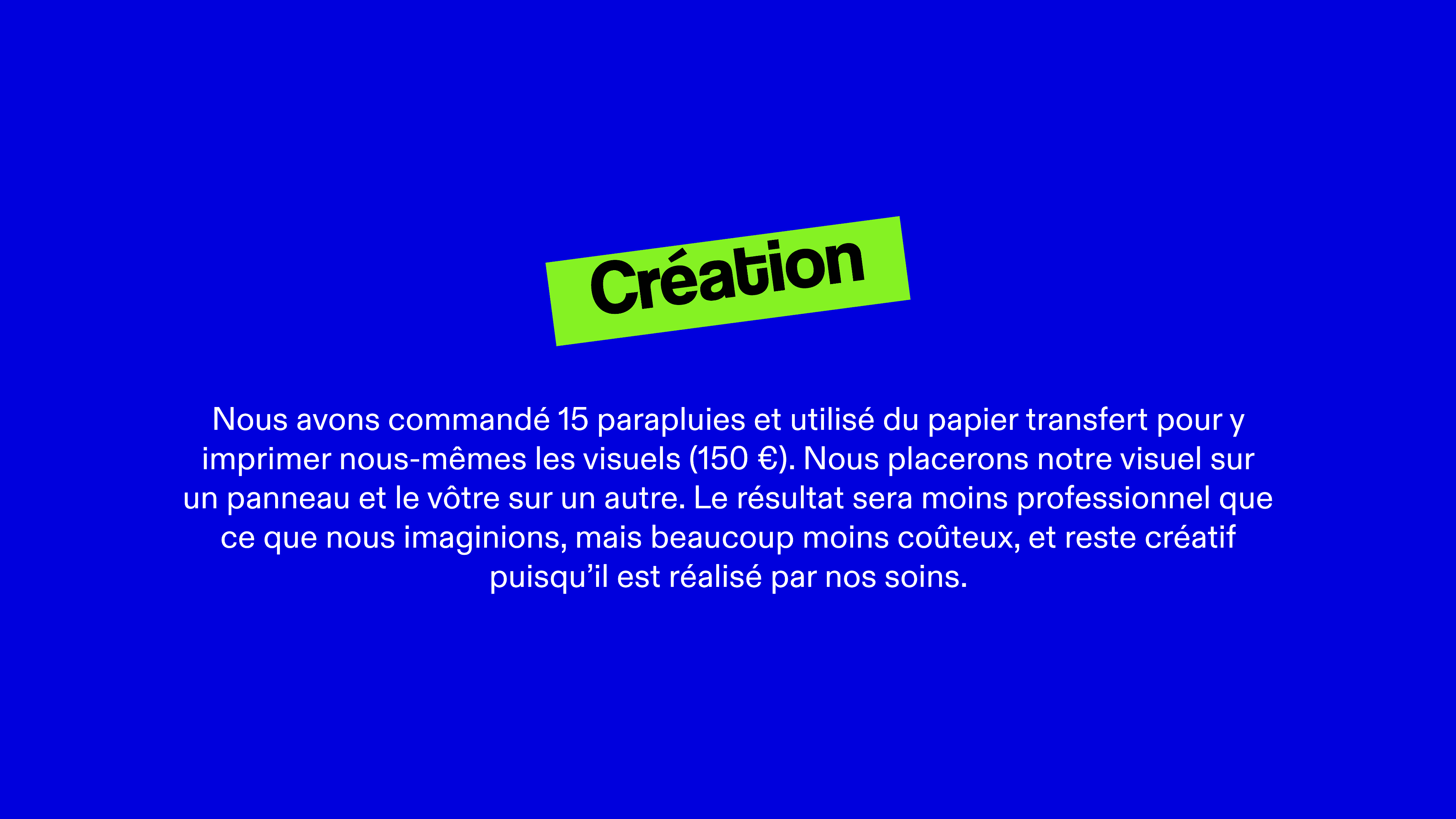 On place des parapluies intégrant notre publicité, imprimée sur leur face