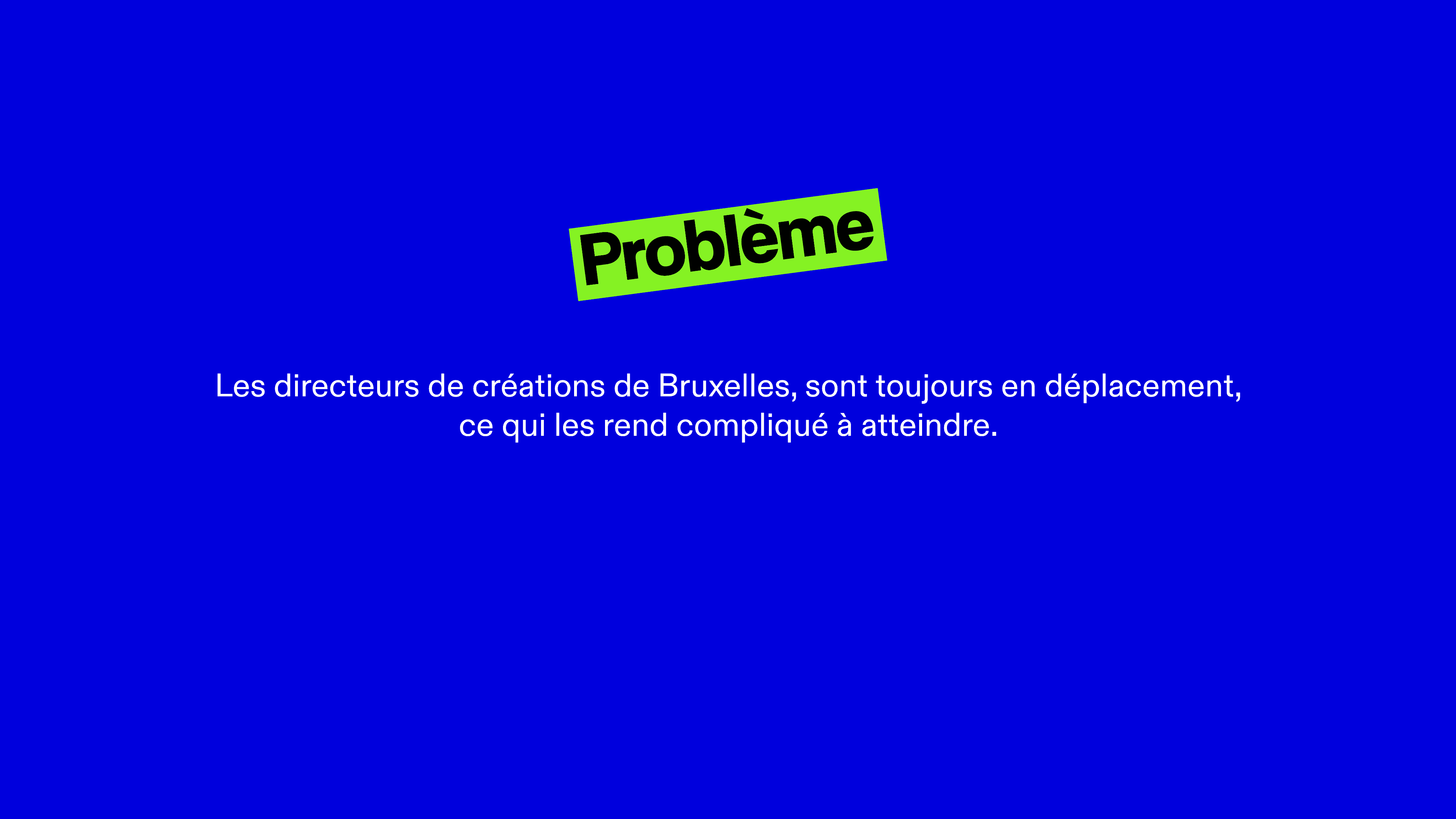 Les directeurs de créations de Bruxelles, sont toujours en déplacement, ce qui les rend compliqué à atteindre.